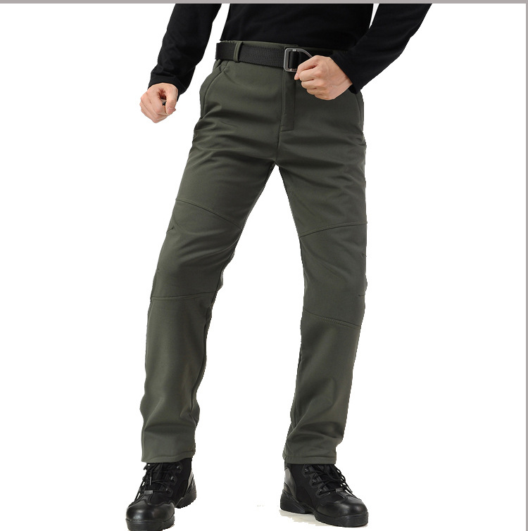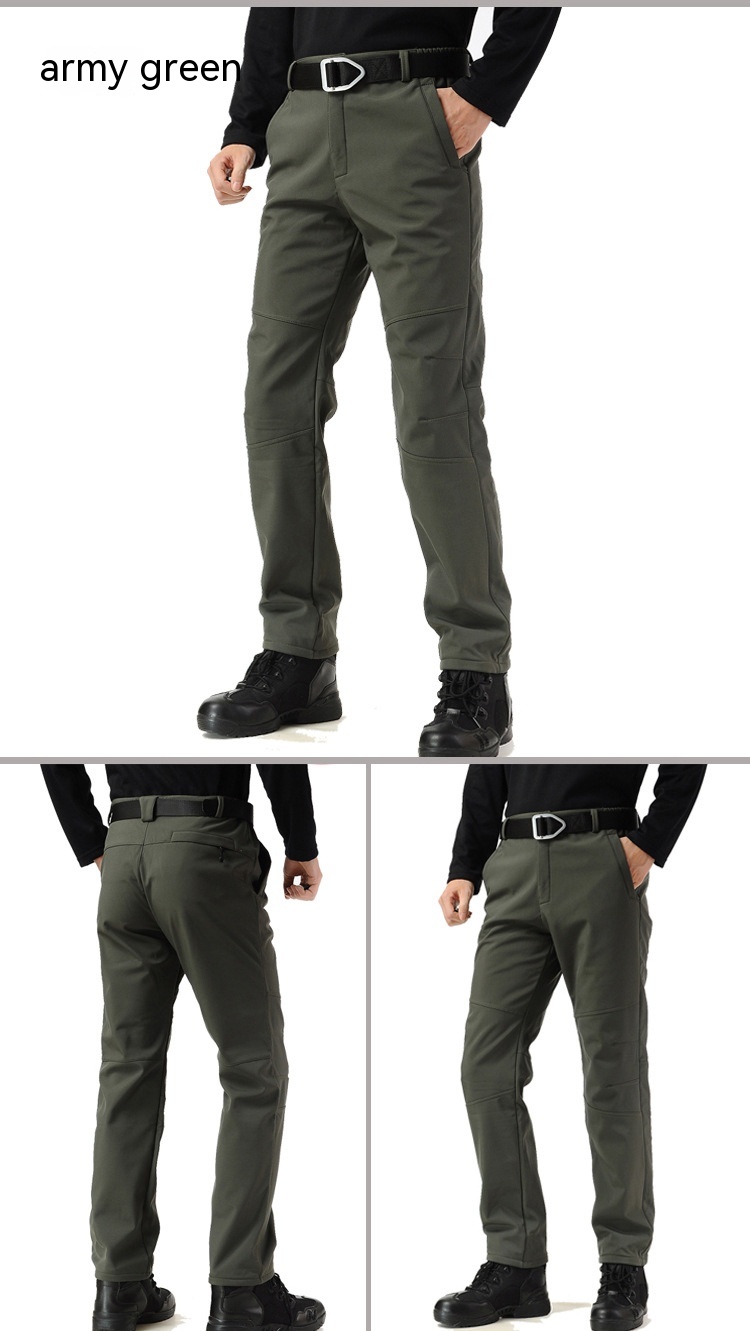 Outdoor Soft Shell Tactical Pants Men's Loose Plus Size Fleece-lined Climbing Pants